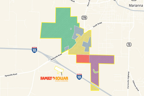 A 214 acre Florida First Certified Site adjacent to the Marianna Municipal Airport. The site features a 6,000-foot newly resurfaced north/south runway, plus a secondary 5,000-foot east/west runway.